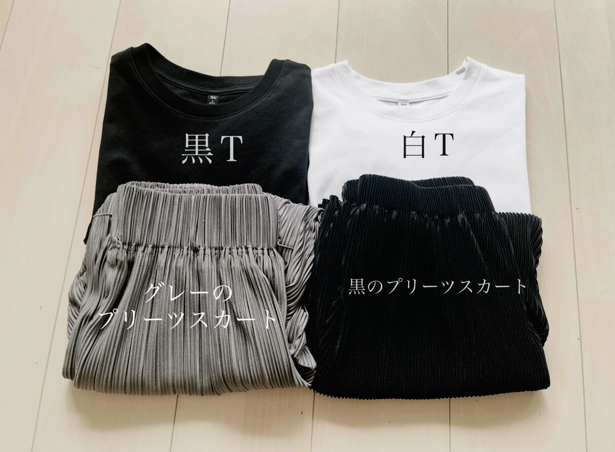 このTシャツ×プリーツスカートのセットが